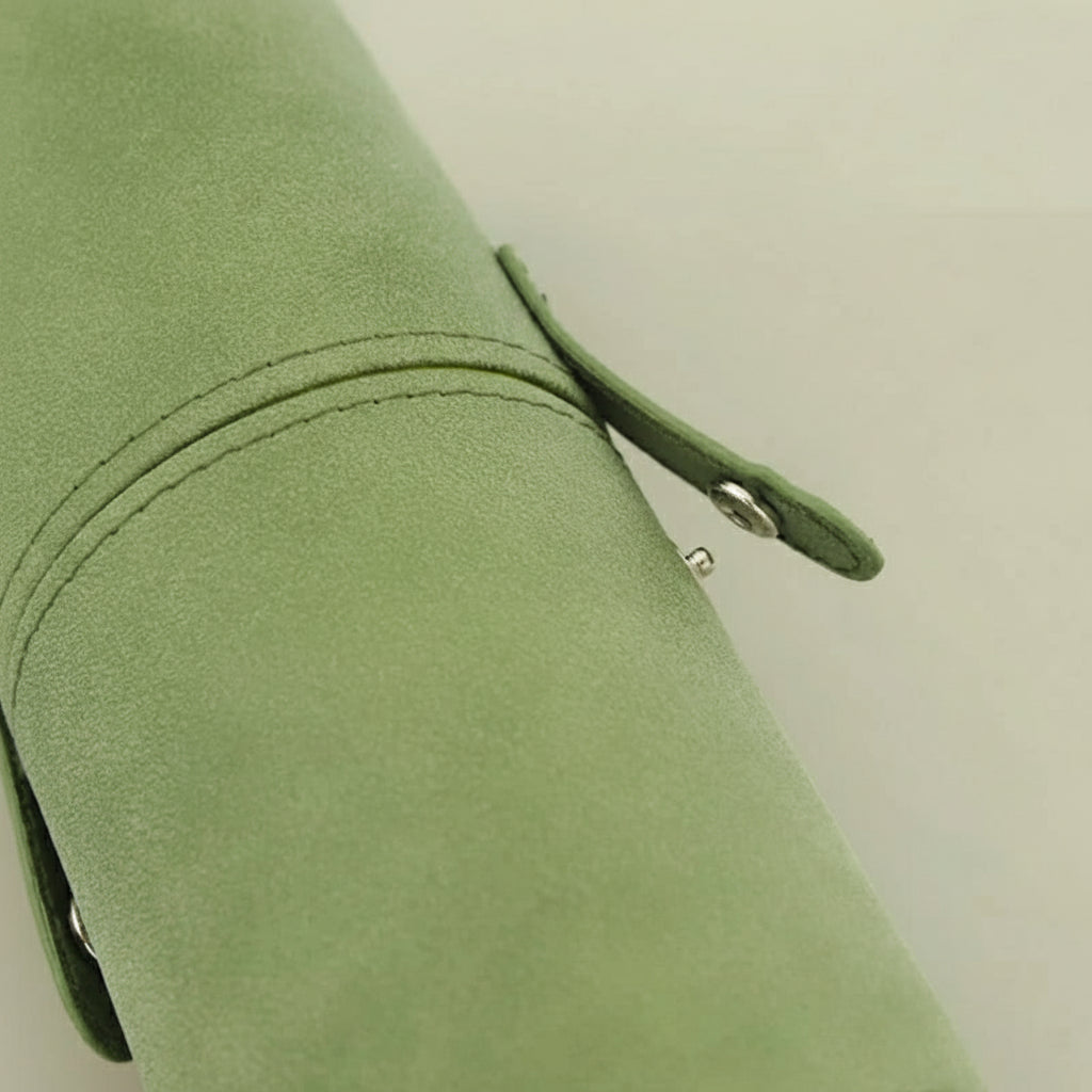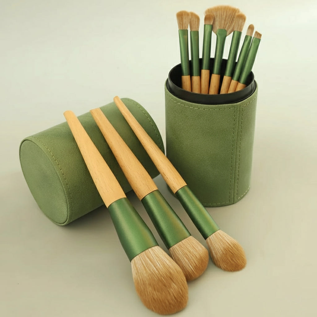 Keep your makeup brushes organized and protected with this sleek PU leather cylinder case.