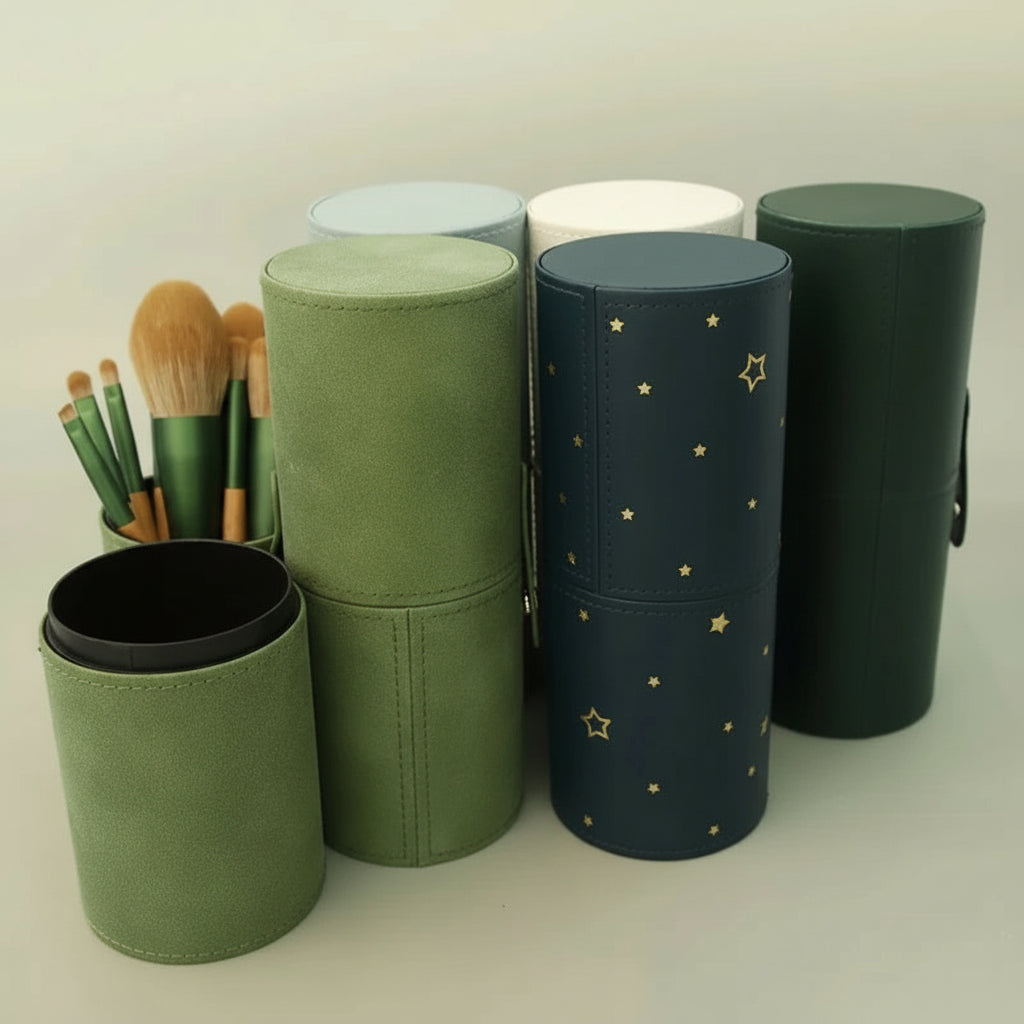 PU Leather Makeup Brush Holder – Portable Travel Cylinder Case, Waterproof & Dust-Proof Organizer